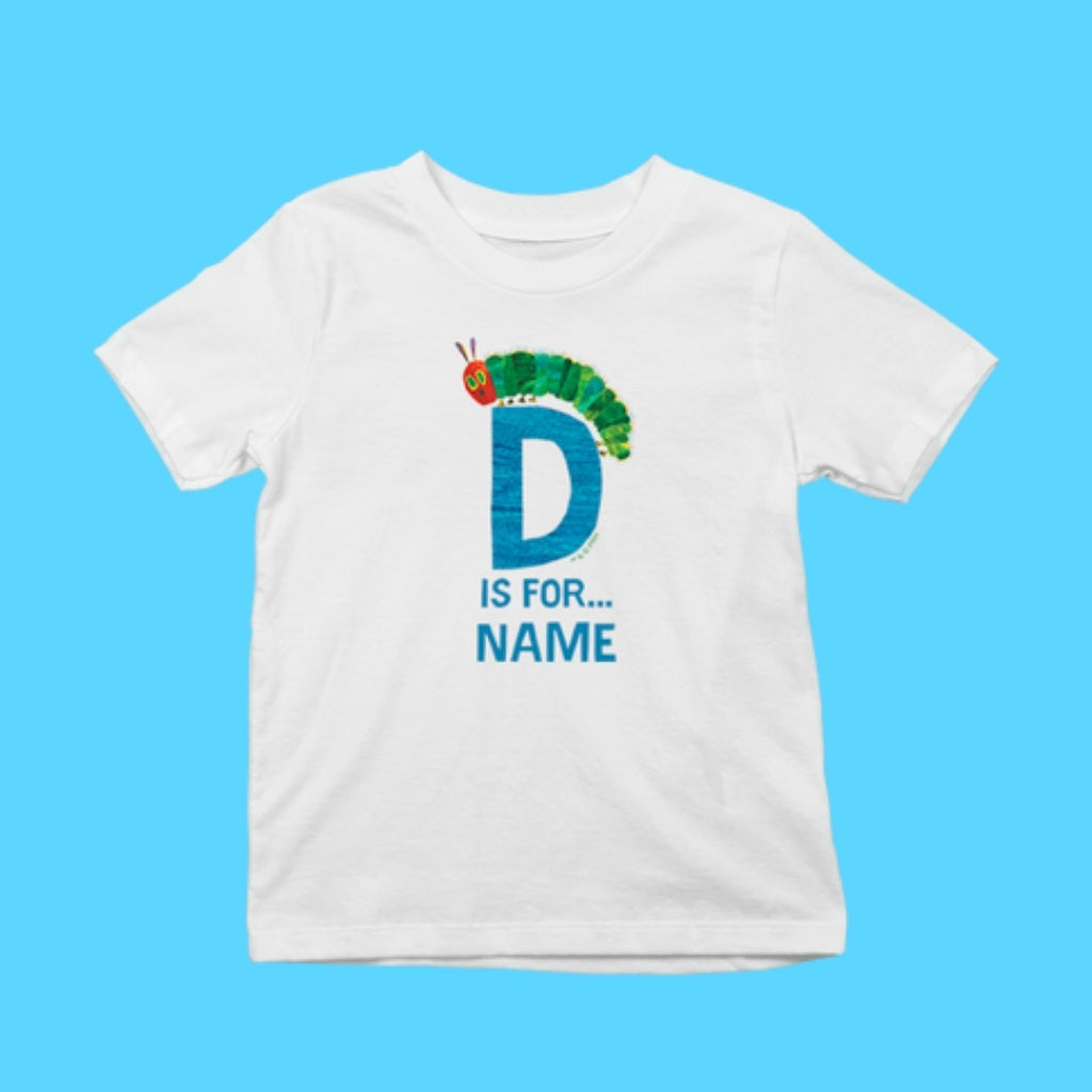 Celebrate your little one's individuality with this vibrant personalised t-shirt, inspired by the timeless charm of Eric Carle’s beloved illustrations. Featuring a bold blue background and colourful tissue-style lettering from A to M, this playful design brings the world of learning to life—perfect for curious minds and creative spirits. Add your child’s initial for a special touch they’ll love to wear again and again.