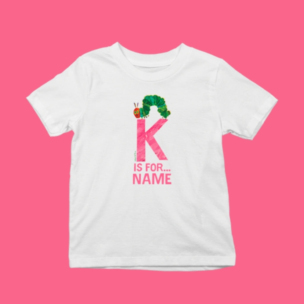 Brighten up your little one’s wardrobe with this charming personalised t-shirt inspired by the timeless World of Eric Carle™. Featuring a soft pink tissue background and customisable with any name from A to M, this tee blends fun and individuality with classic storybook magic. Made from soft, breathable cotton, it’s gentle on sensitive skin—perfect for everyday adventures, nursery, or special occasions. Whether it's a thoughtful gift or a unique addition to your child's collection, this t-shirt is sure to delight fans of The Very Hungry Caterpillar™ and beyond.