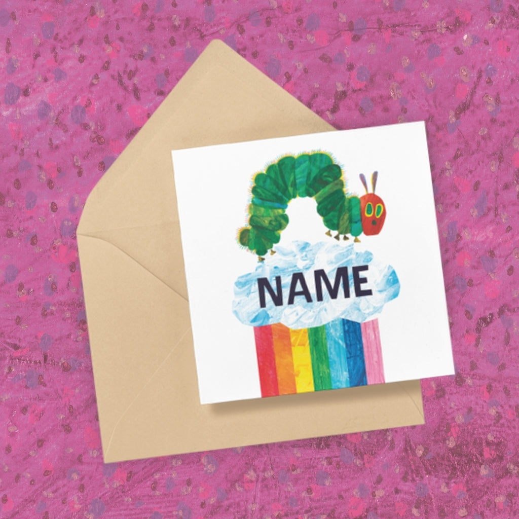 Brighten someone’s day with this beautifully designed personalised greeting card, inspired by the vibrant World of Eric Carle™. Featuring a cheerful rainbow theme, this card is perfect for birthdays, celebrations, or simply sending a thoughtful message to a loved one. Add your own personal touch with a custom message to make it truly unique. Ideal for fans of World of Eric Carle™ iconic illustrations, this high-quality card brings charm, colour, and joy to any special moment.